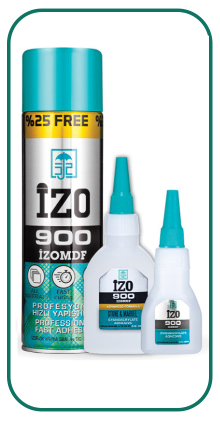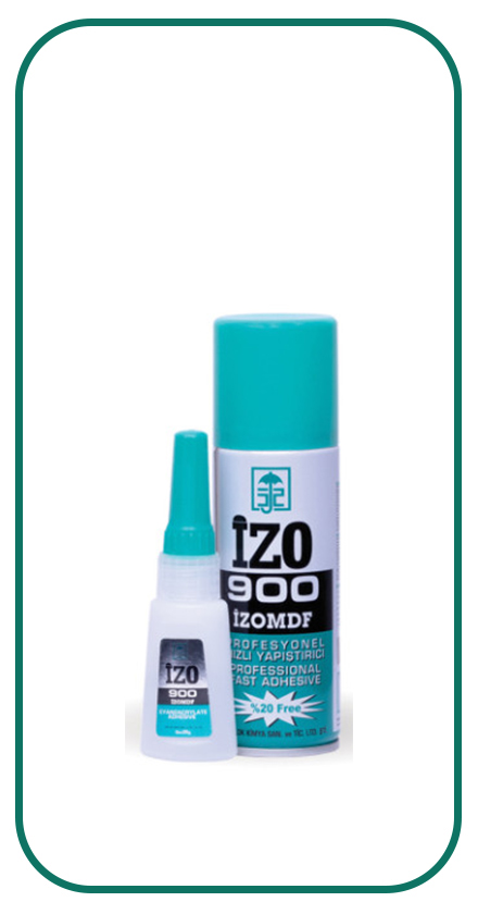 IZO VE FINAL MDF–KIT, siyanoakrilat ve aerosol aktivatöründen oluşan hızlı kürlenen bir yapıştırıcıdır.